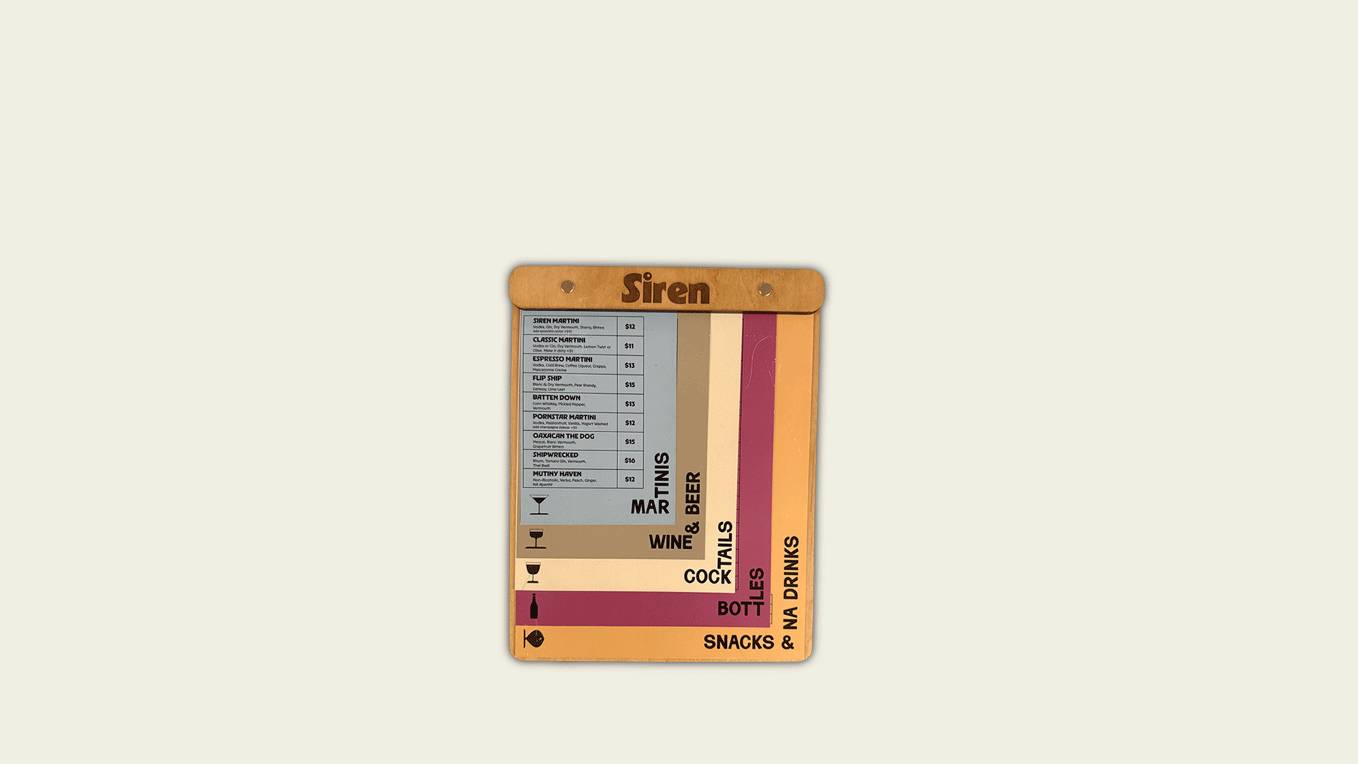 Siren is a South Boulder cocktail bar rooted in East Coast dockside energy. The goal wasn’t to build a themed maritime bar. It was to create something bold, graphic, and unmistakably its own.